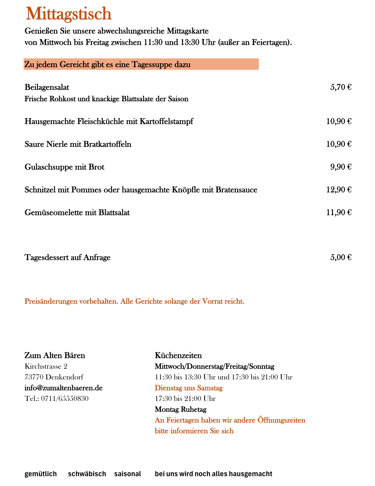 Speisekarte