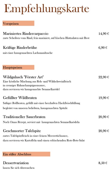 Genießen Sie unsere köstlichen, regionalen Gerichte.