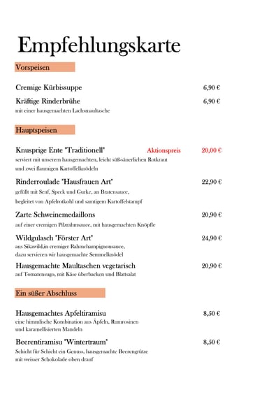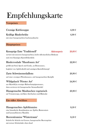 Entdecken Sie unsere wechselnden saisonalen Angebote.