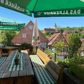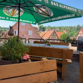 Genießen Sie im Sommer das Wetter auf unserer schönen Gartenterrasse mit Blick auf das Denkendorfer Kloster. Entspannen Sie sich inmitten der idyllischen Umgebung und lassen Sie sich von der schwäbischen Küche verwöhnen.Verbringen Sie gemütliche Stunden mit Familie und Freunden und lassen Sie sich von unserem freundlichen Service verwöhnen. Kommen Sie vorbei und erleben Sie die perfekte Kombination aus gutem Essen und entspanntem Ambiente auf unserer Gartenterrasse.