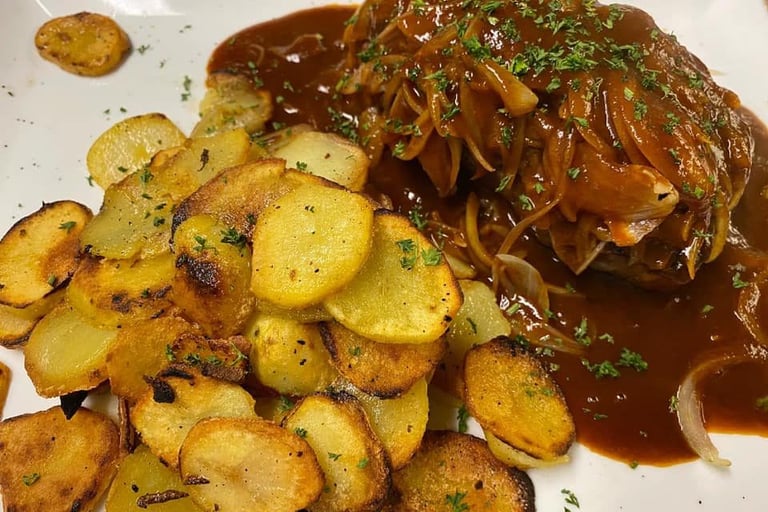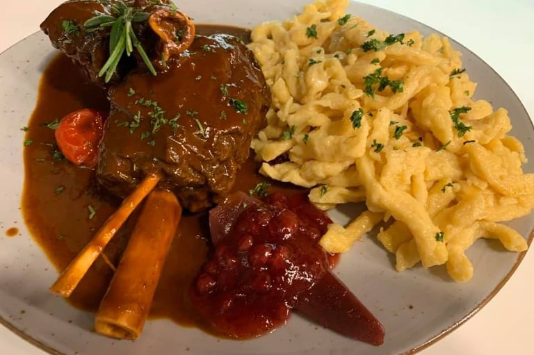 Das Restaurant wird seit 2019 von Vater und Sohn geführt und bietet köstliches Essen aus der schwäbischen Küche. Hier werden hausgemachte schwäbische Gerichte serviert, die mit viel Liebe und Sorgfalt zubereitet werden. Neben den klassischen Speisen gibt es auch leckere saisonale Empfehlungen, die den Gaumen verwöhnen. Die traditionelle schwäbische Küche zeichnet sich durch ihre deftigen und herzhaften Gerichte aus, die oft mit regionalen Zutaten zubereitet werden.. Ob Maultaschen, Spätzle, Zwiebelrostbraten oder Käsespätzle - hier kommt jeder auf seine Kosten. Kommen Sie vorbei und genießen Sie leckeres Essen in gemütlicher Atmosphäre!